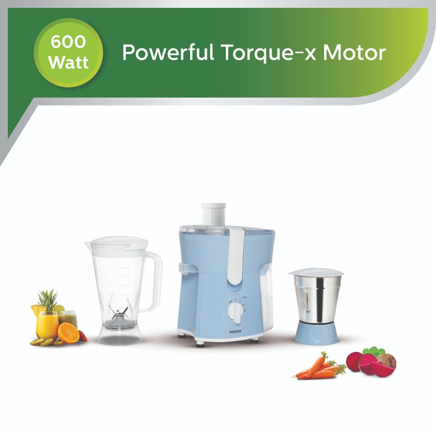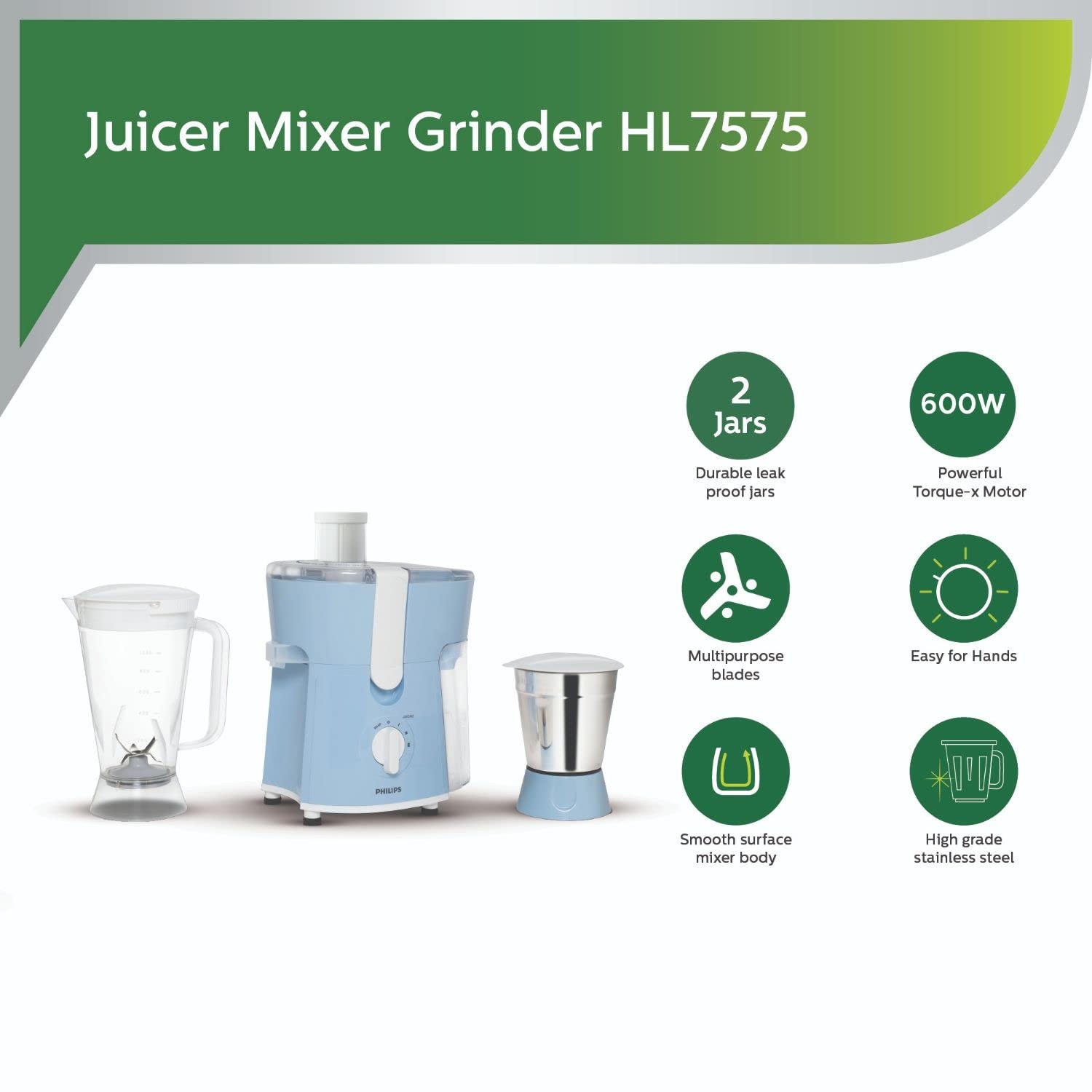 Philips HL7575/00 600W Juicer Mixer Grinder | Torque X Motor & 2 Jars (Blue)